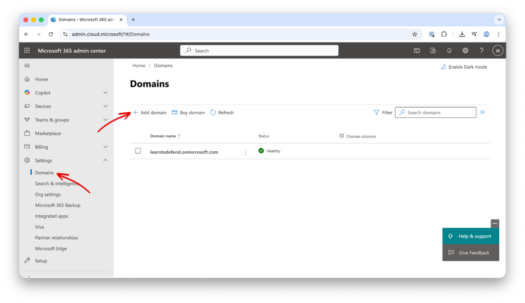 Nästa steg är att lägga till din egen domän så att du kan använda e-post och Teams med @dittföretag.se istället för dittföretag.onmicrosoft.com.